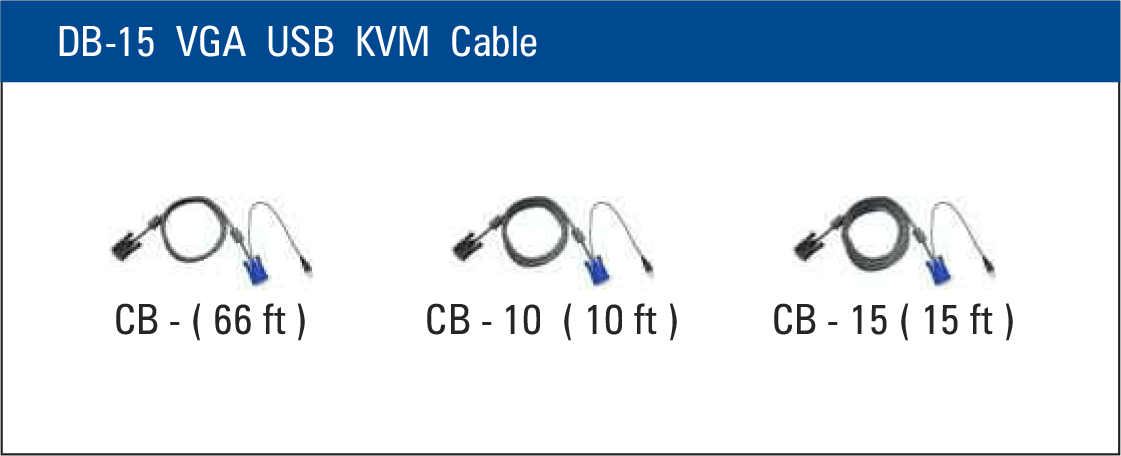 | VGA console 6ft cable : CB-6 or DVI-D console 6ft cable : CX-6 | Drawer end : DB-15 ( VGA + USB KB / MS ) Server end : VGA + USB type A |